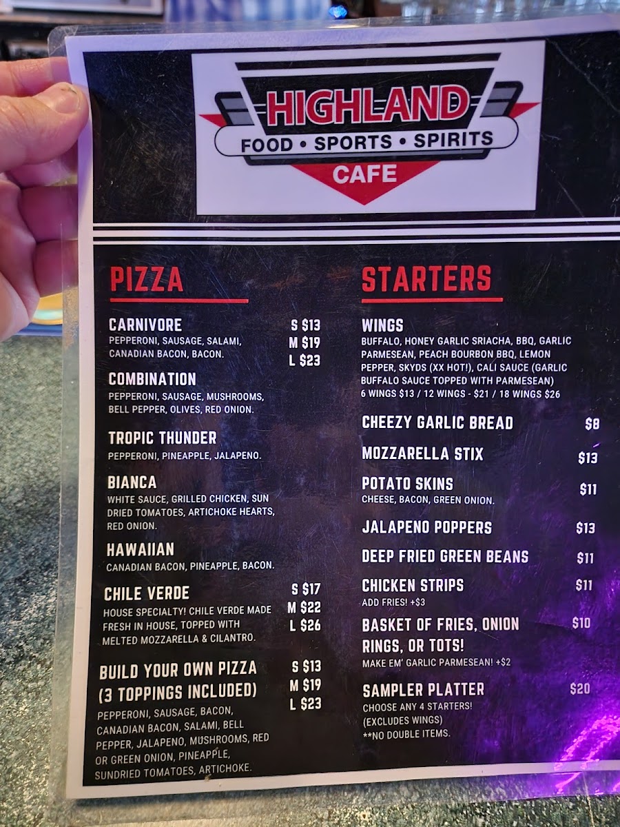 Welcome to Highland Pizza & Pub, a true gem in the heart of Bakersfield. At this cozy spot located at 2201 N Chester Ave, you can expect a menu brimming with delicious options. Start your adventure with mouthwatering starters like crispy wings and cheesy garlic bread. The pizza selection shines here, with fan favorites like the Tropic Thunder and Chile Verde—both are must-tries for their unique flavors and perfectly crispy crusts.